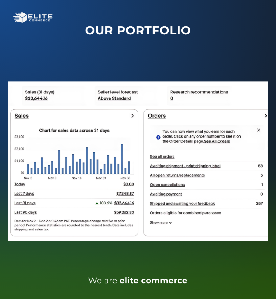 Partner with EliteCommerce and unlock the full potential of your eBay business. Our expert team is ready to help you increase sales, improve account health, and build a thriving eBay presence.