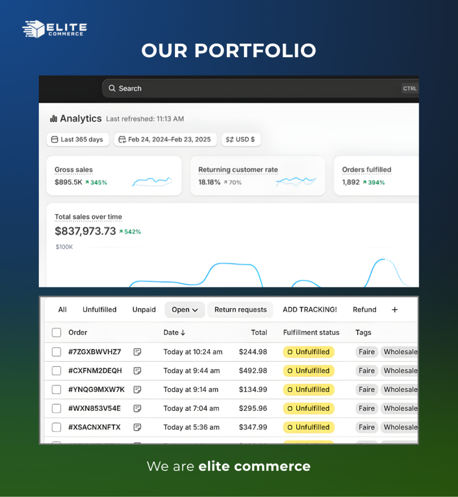 A Shopify store is more than just a website; it is your brand’s global headquarters. At Elite Commerce, we build high-performance, conversion-centric Shopify stores designed to turn casual visitors into loyal customers. From the first line of code to daily operational management, we ensure your store is fast, secure, and perfectly optimized for the modern e-commerce landscape.